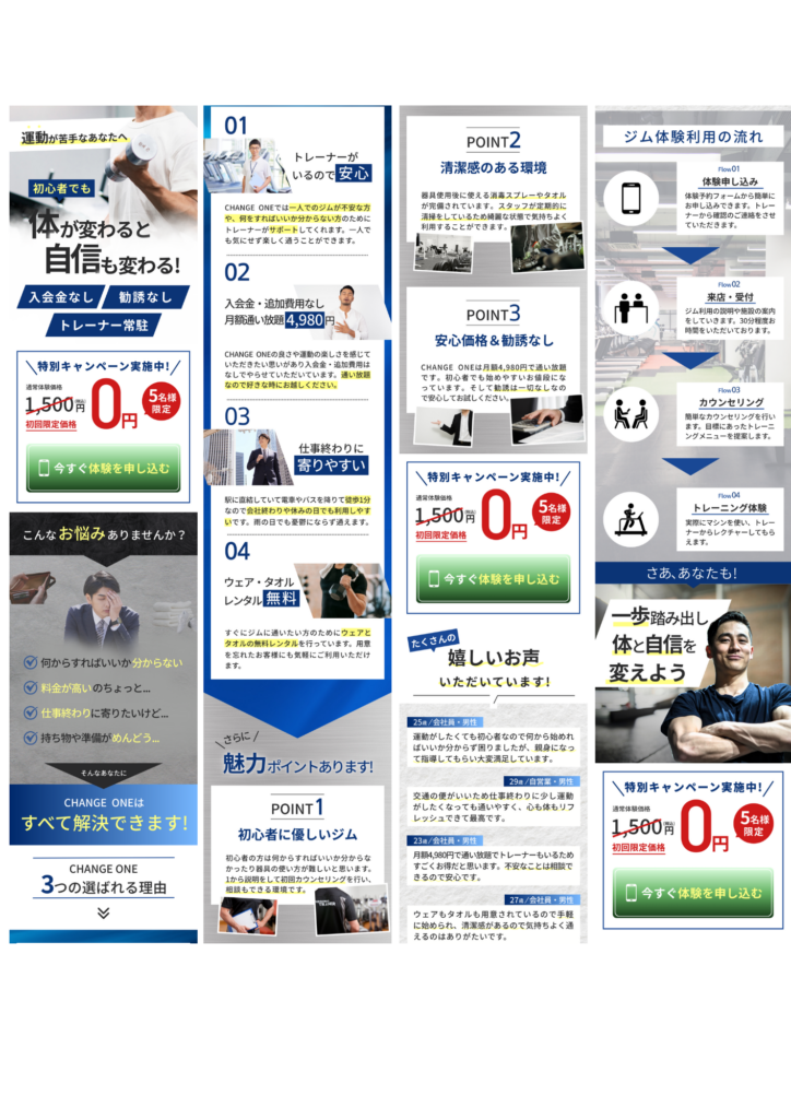 デザインがただ美しいだけではなく、「成果につながるデザイン」を作成することを意識しています。色やフォントに統一感を持たせ、スマホでも読みやすいデザインに仕上げることを心がけています。
